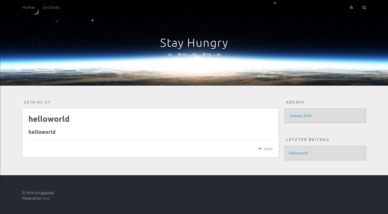 (主要是其中我修改了 _config.yml 配置文件的关系,所以标题什么的可能显得不一样,不过能出现类似的页面说明 hexo 已经配置成功)