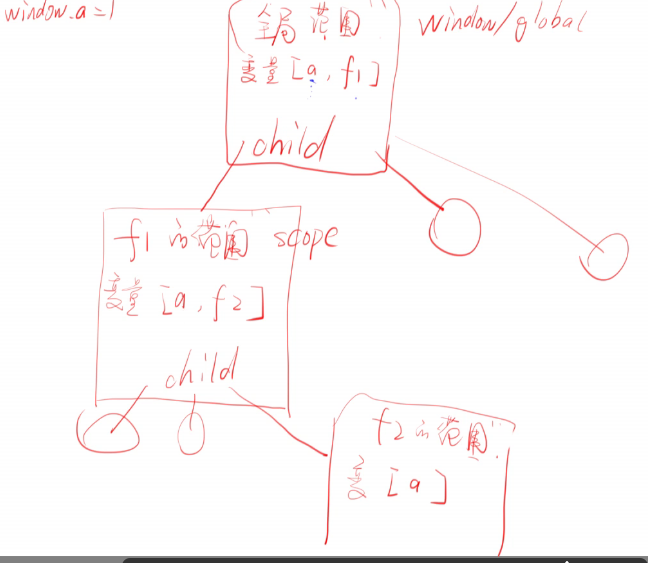 console.log(a) // 这里的 a 是 1 ,因为这个 a 跟 f4 这个作用域有关,或者跟它的父作用域有关