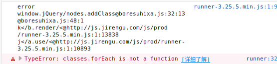 说明是 addClass 函数的问题, console.log 一下 nodes.length 果然是 null,那么问题出在哪儿呢? 函数里声明的 nodes 应该是可以被访问到的,能被访问到为何没有 length ??? 看了下前面代码中