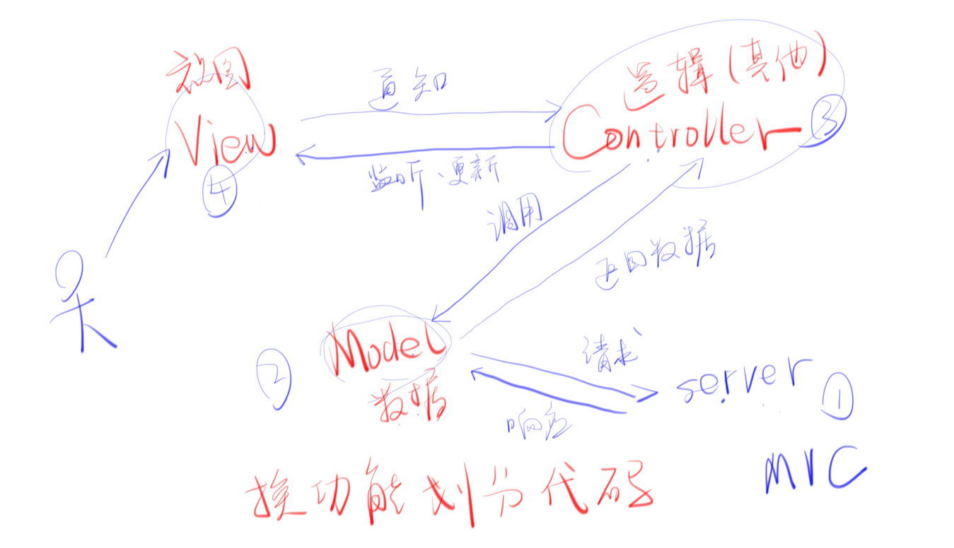 这一层则用来综合控制 view 层以及 Model 层,它监听 view 层的变化,当 view 层有变化时则及时通知 Controller ,然后 Controller 调用 Model 来返回数据并同时更新 view, Molde 则再次请求 Server 进行数据的更新