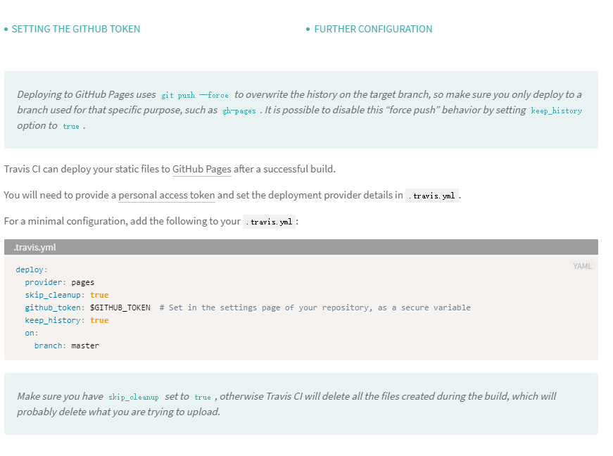 最后的最后需要注意的,可能是一个坑,但是我还是加上了,就是有看到 github 上有 issue 讨论这个问题GH_TOKEN has not authenticated Travis CI yet