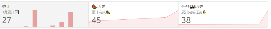 • 待办 todo 历史统计:表示自己短时间内执行完的小任务的量化表示,可编辑/删除/恢复,同时可以查看已经删除的任务