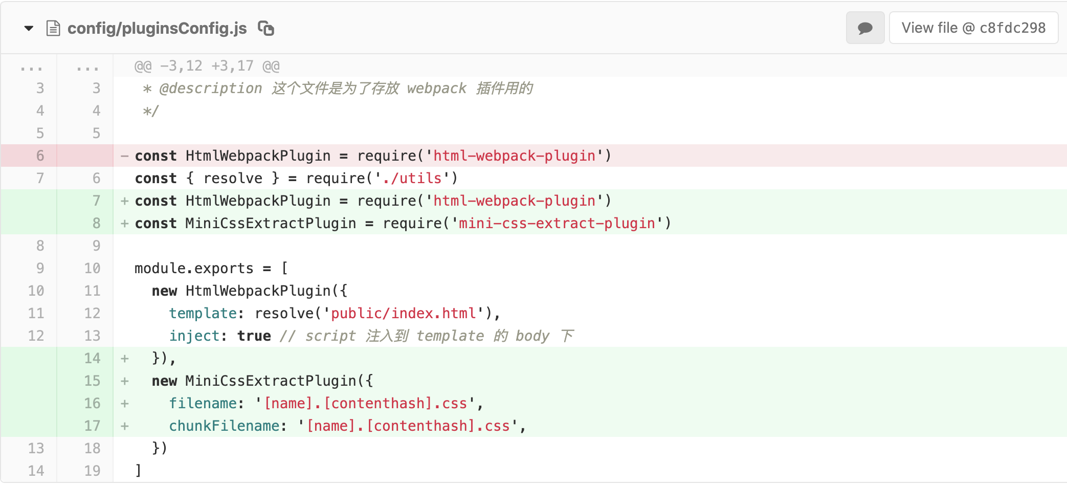 这里为啥要对 style-loader 做一个替换呢,因为我们知道在 style-loader 是在页面上添加一个 style 节点的,而分离 css 的步骤应该发生在 css-loader 之后,所以需要做一个替换(也就是说 minicss extract 这个插件内部帮我们做了 style-loader 的事情)