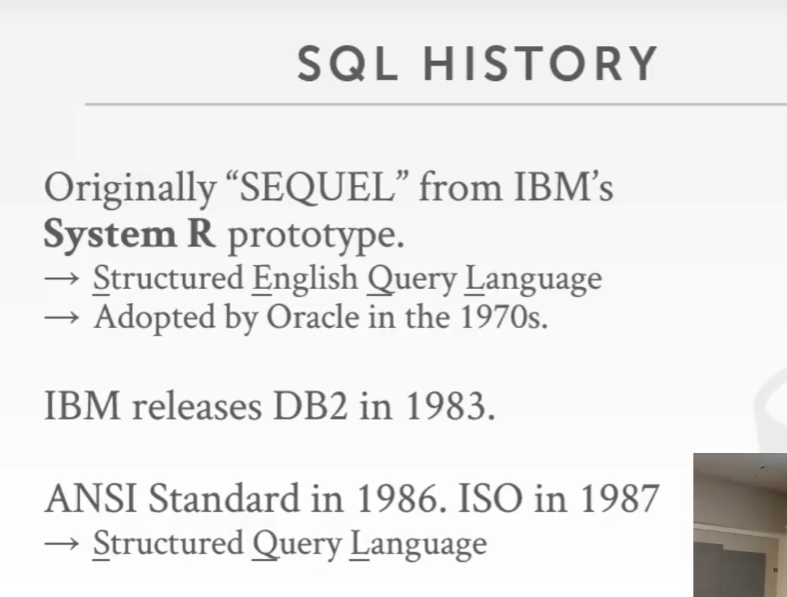 - 除了 IBM 推出的 SQL 之外,还有另一个主流是由伯克利推出的 Ingres