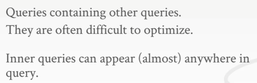 即在查询的内部再嵌套一个查询