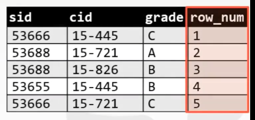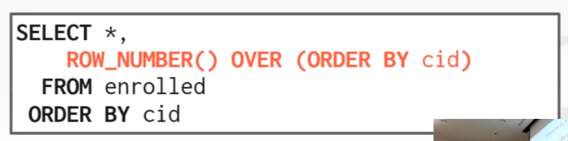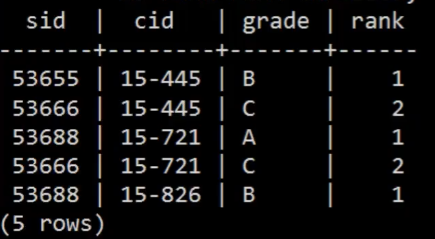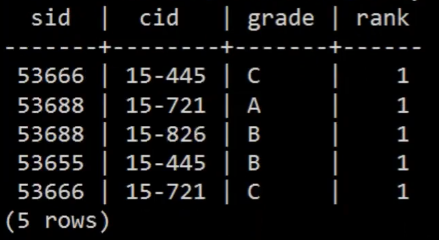 SELECT *, RANK() OVER() AS rank FROM enrolled;,那么就是如下的结果