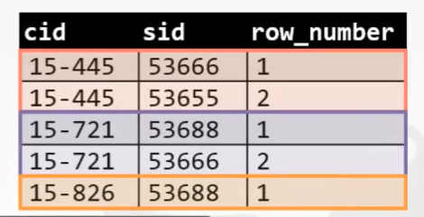 根据 cid 对它们进行分组,每一组内按 row_num 的顺序排列