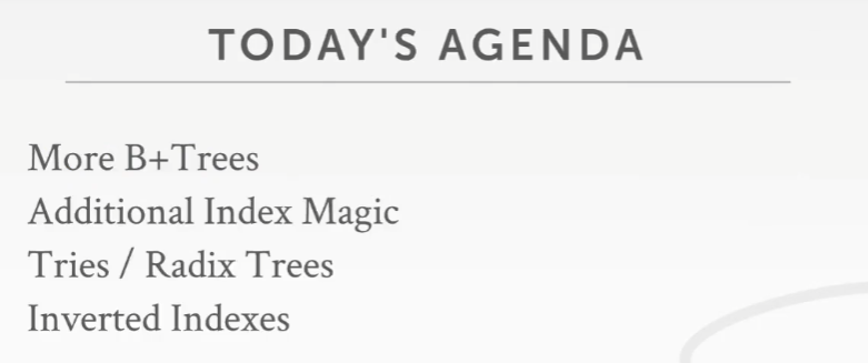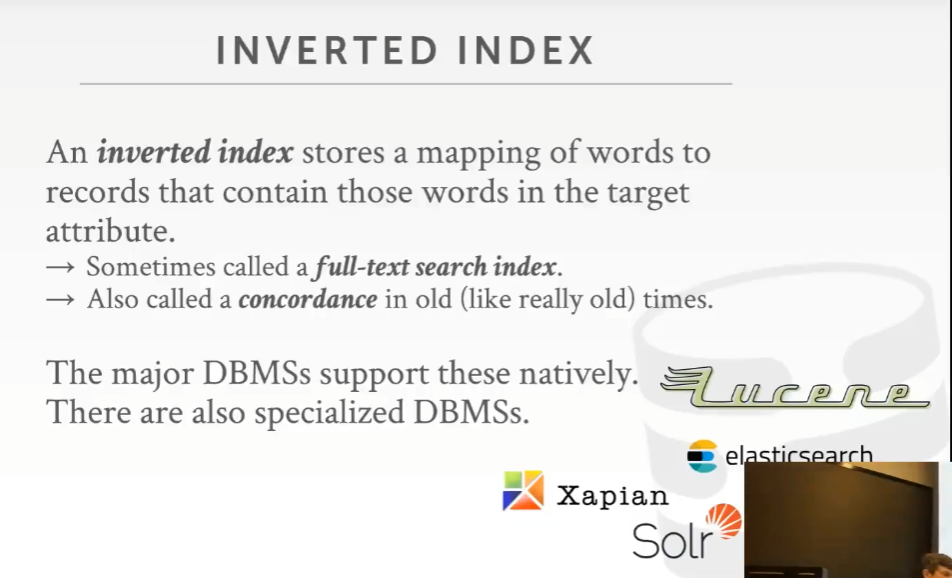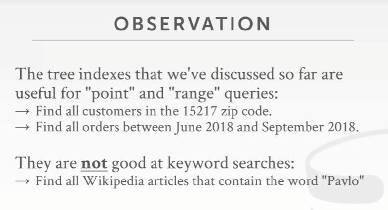 这里还有另一类索引没有讨论,比如地理空间索引(Geo-Spatial Indexes),R-Tree,Quad-Tree 和 KD-Tree,这些在视频数据库和图数据库中非常常见,CMU 15-826 有对应的内容
