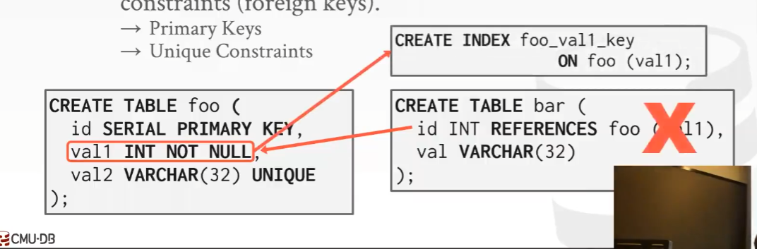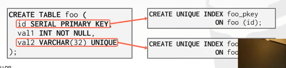 相反,只能在该处添加一个 UNIQUE 关键字,这会让数据库自动去构建一个索引
