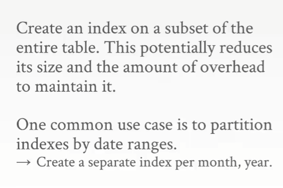 对于许多应用程序而言,可能不需要在整个表上使用索引,而是在某些数据子集上进行索引
