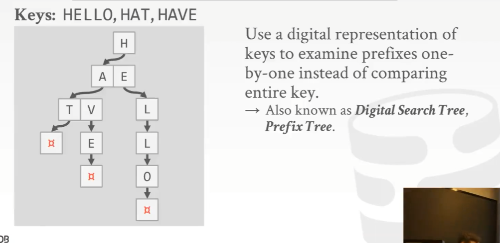 radix tree 是 trie tree 的一种特殊版本,没人会在数据库中使用 trie,他们用的都是 radix tree