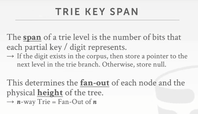 比如 fan-out 的量为 n,那么就是每个节点最多有 n 条路线,这会决定 Trie 在每一层所保存的 digit 的数量