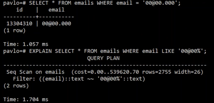 CREATE INDEX idx_emails_hash ON emails USING HASH (email);
