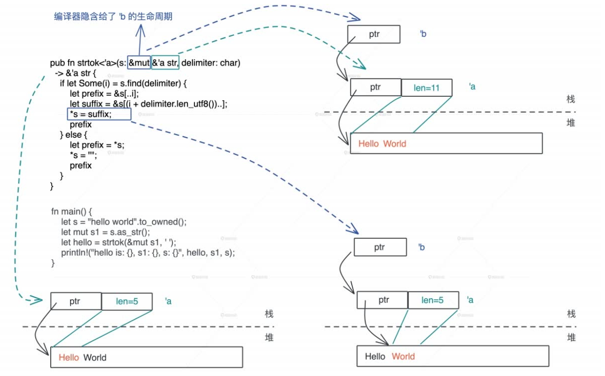 - 如果有多个引用类型的参数,其中一个是 self,那么它的生命周期会赋给所有输出