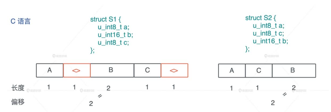 而对于 C 来说,它的 struct 会有如下的规则