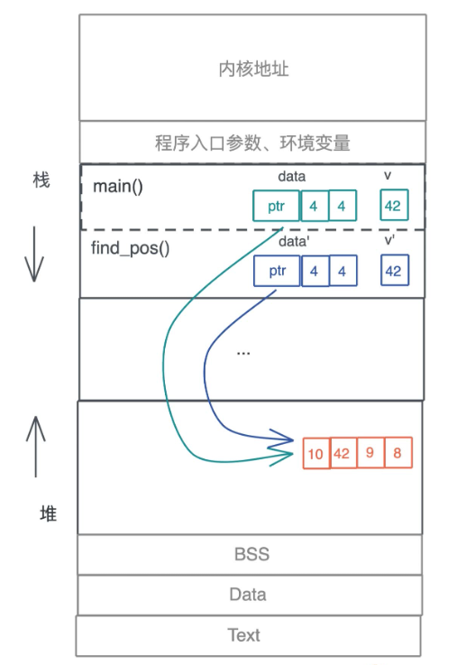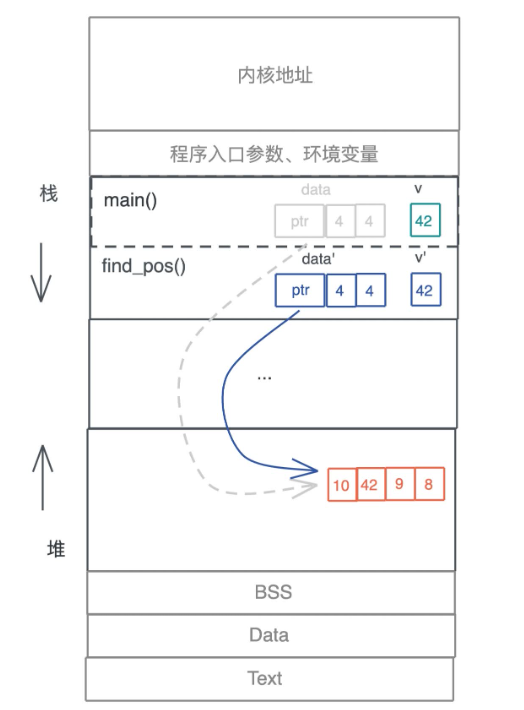 在 main 函数和 find_pos 函数里面,都有一个指向同一个在堆上的数据引用,这种情况会导致一些问题,比如